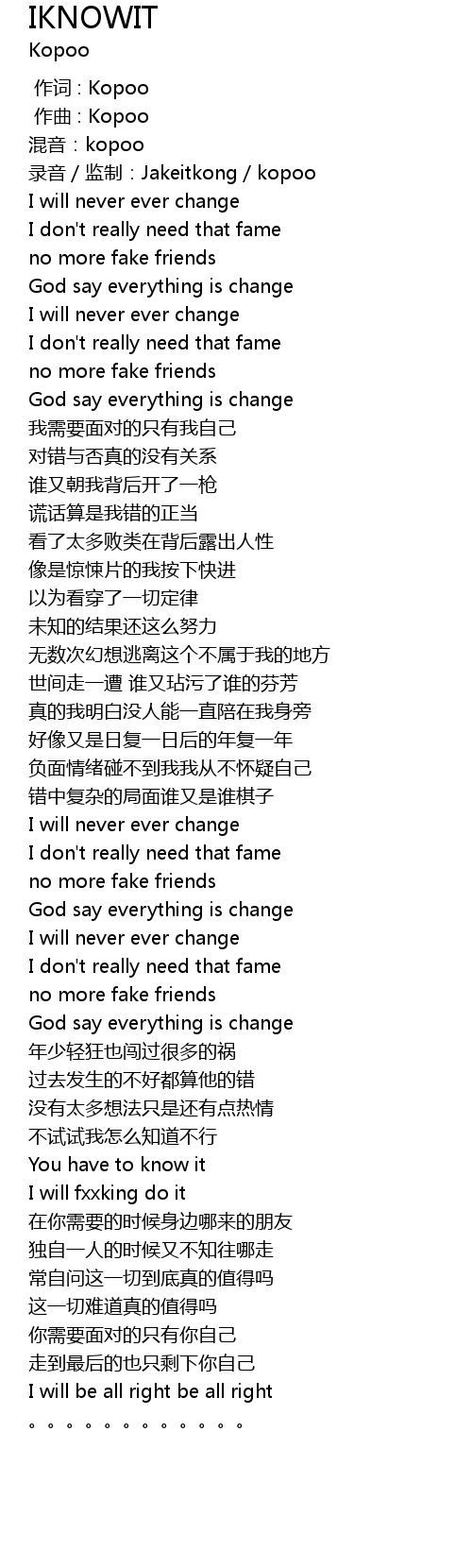 | [00:44.007] | God say everything is change |