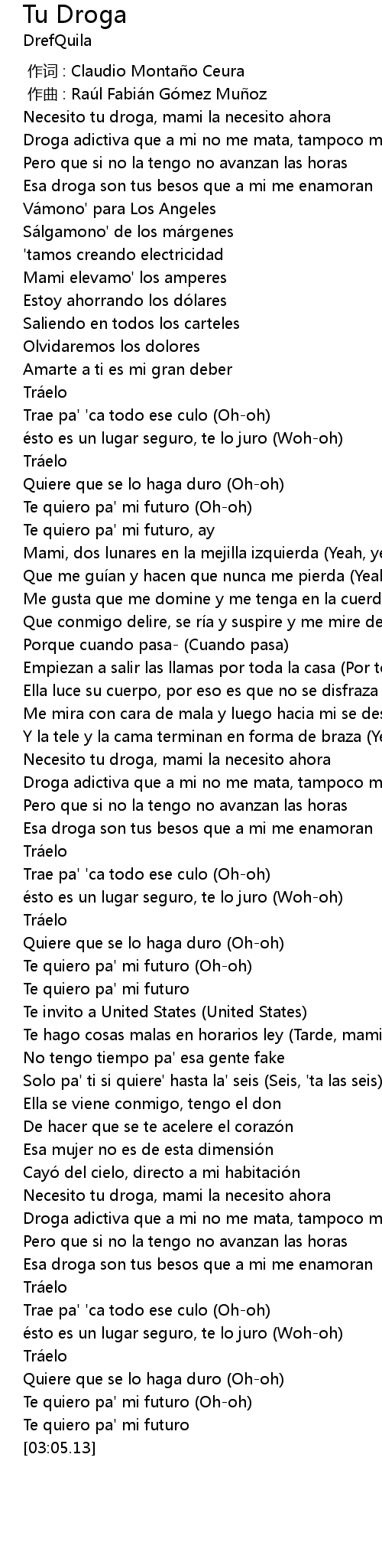 | [02:31.05] | Necesito tu droga, mami la necesito ahora |