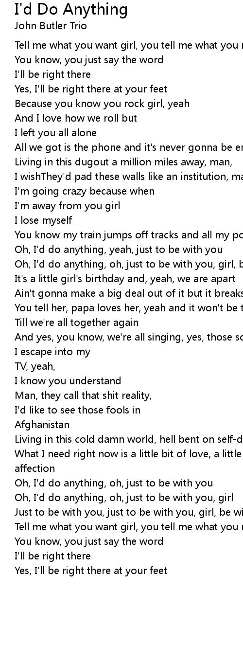 Oh, I'd do anything, oh, just to be with you, girl, be with you