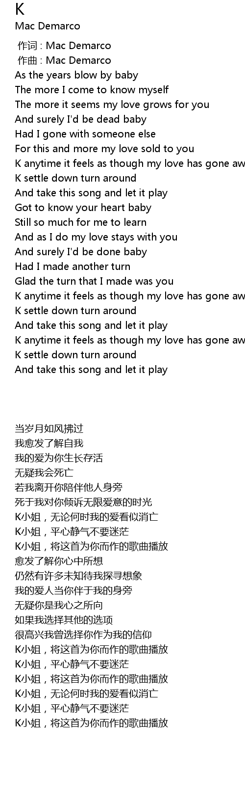 | [03:00.06] | K小姐,无论何时我的爱看似消亡 |