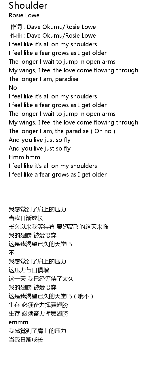 | [00:09.11] | I feel like it' s all on my shoulders |