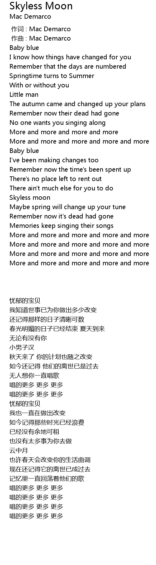 | [03:00.24] | More and more and more and more and more |