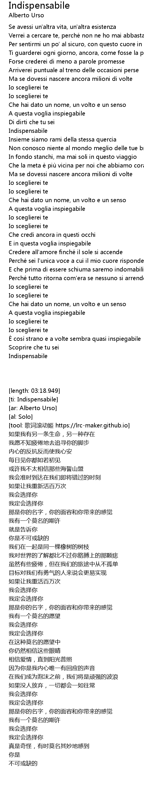 | [00:06.798] | Verrei a cercare te, perche non ne ho mai abbastanza |