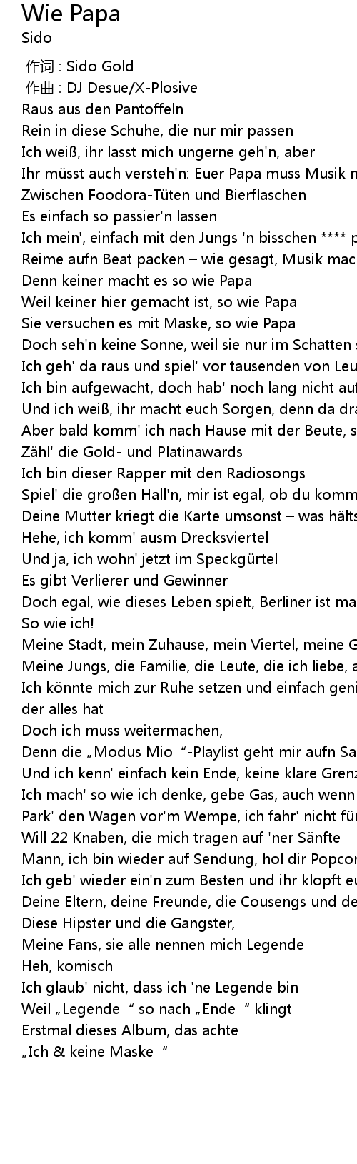 | 歌曲 | Wie Papa |