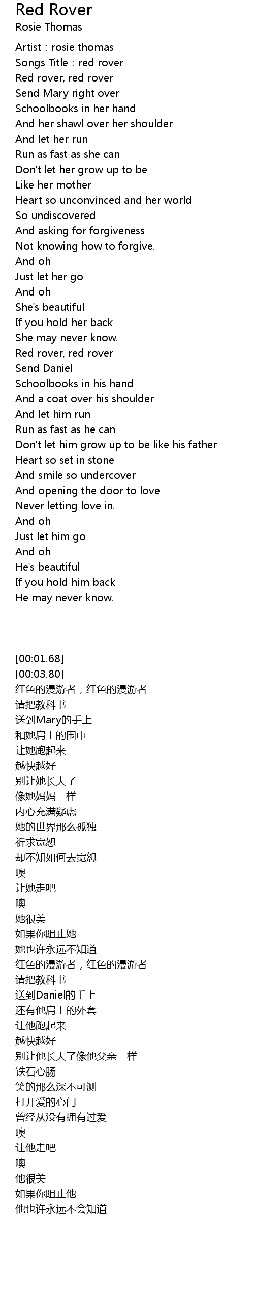 | [00:03.80] | Songs Title:red rover |