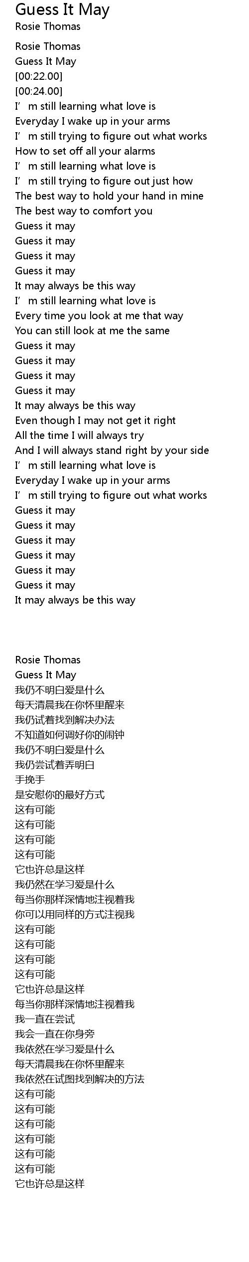 | [01:23.00] | Guess it may |