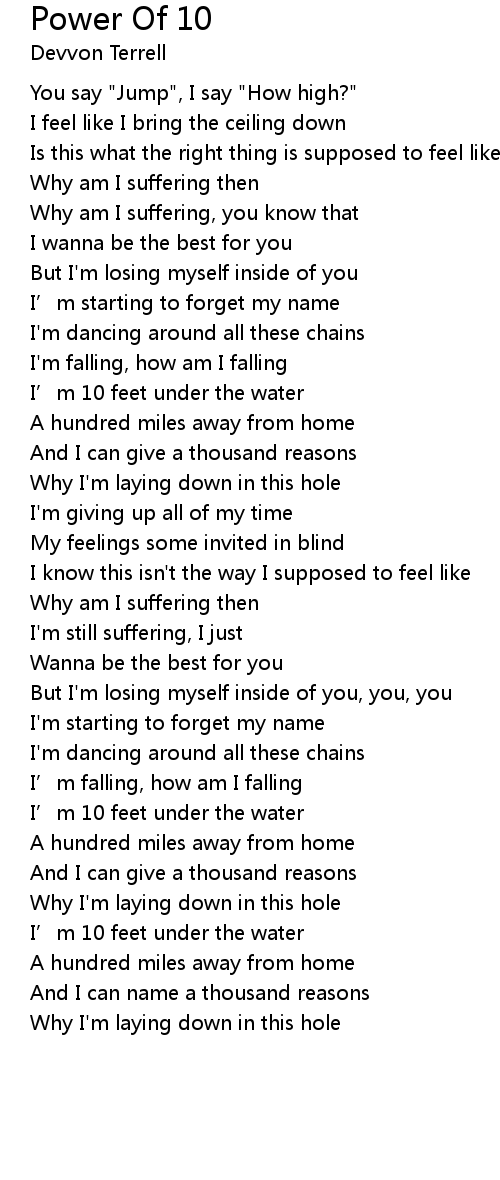 | [02:04.73] | I’m 10 feet under the water |