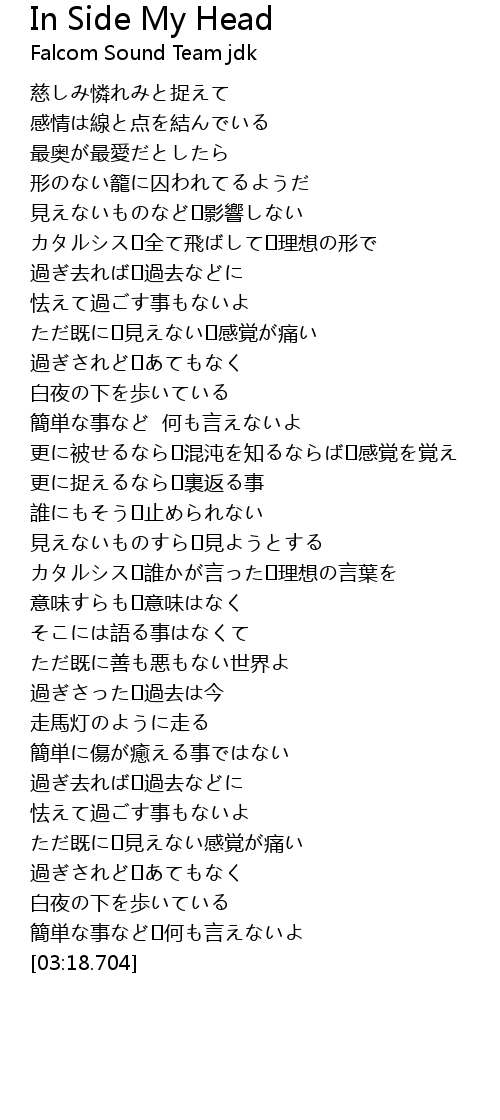 | [01:05.779] | ただ既に 見えない 感覚が痛い |