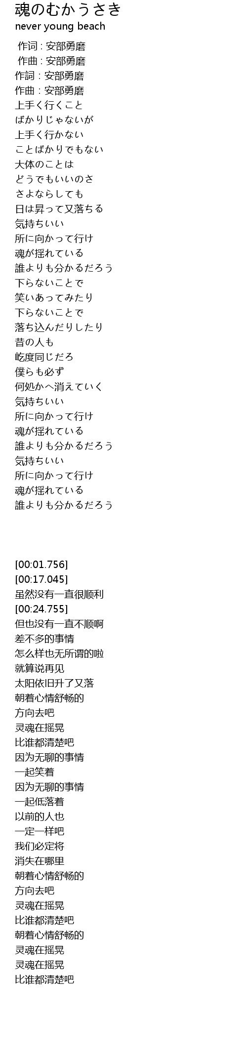 作词 : 安部勇磨 |