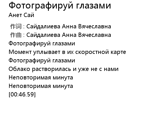 | [00:00.000] | 作词 : Сайдалиева Анна Вячеславна |