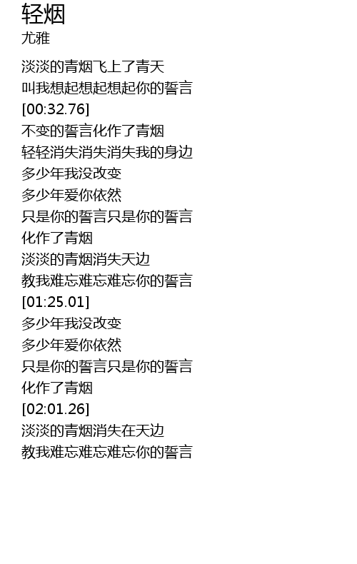 | [00:35.59] | bù biàn de shì yán huà zuò le qīng yān |