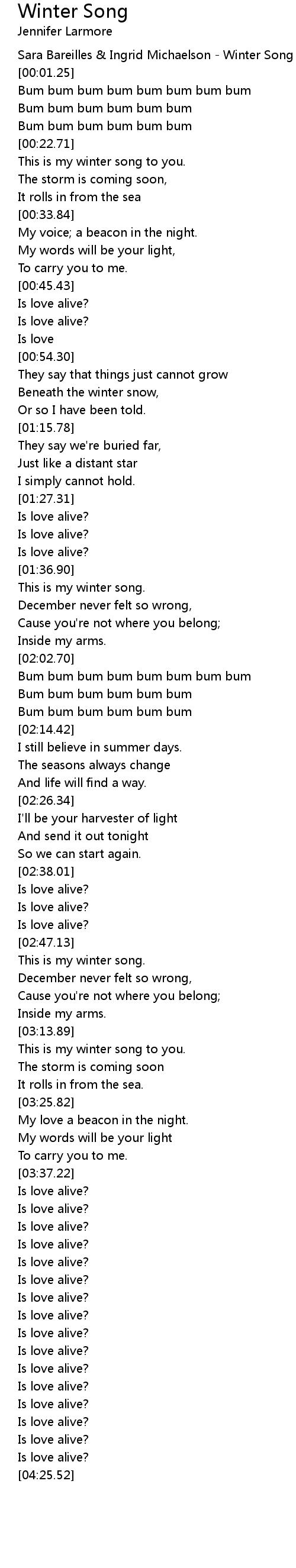 [00:00.67] Sara Bareilles & Ingrid Michaelson - Winter Song
