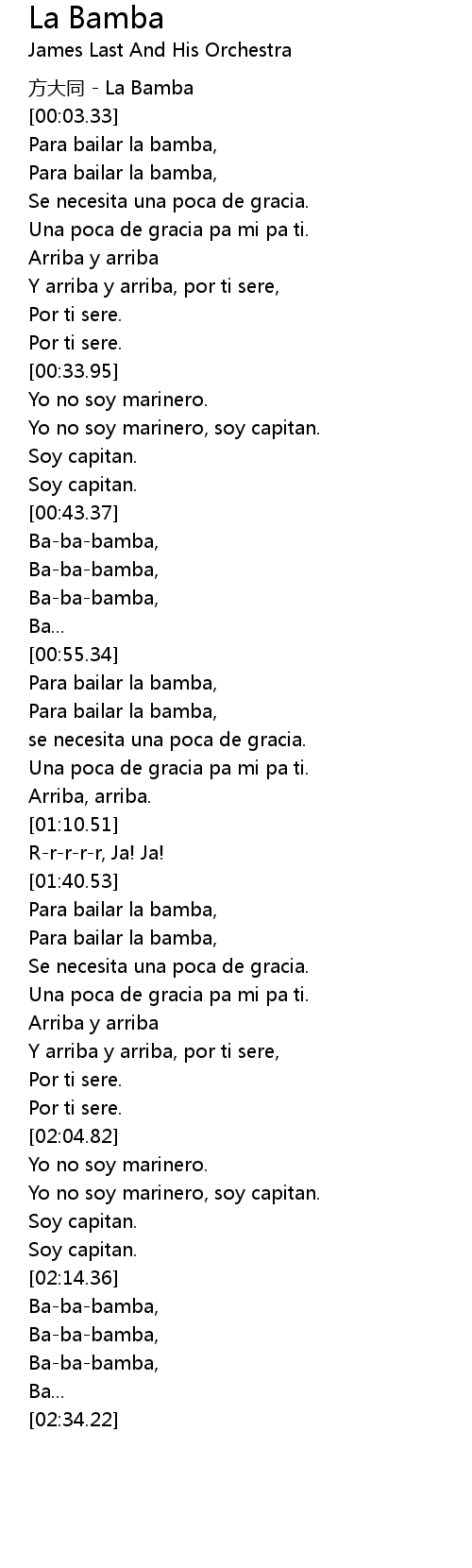 | [02:14.96] | Ba-ba-bamba, |
