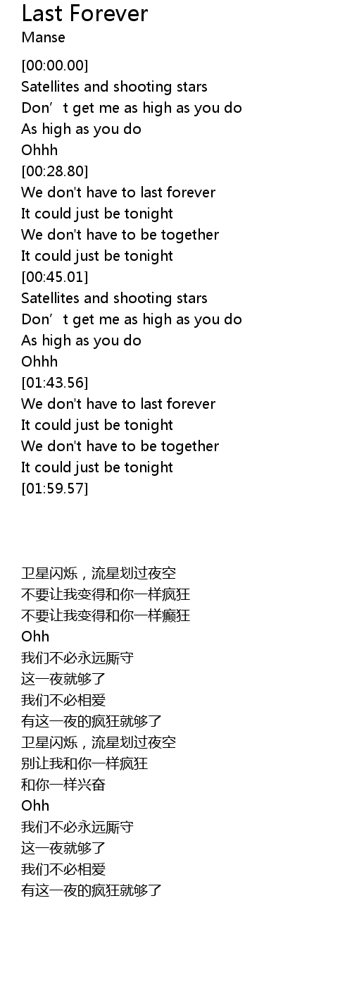 | [00:14.25] | 卫星闪烁,流星划过夜空 |