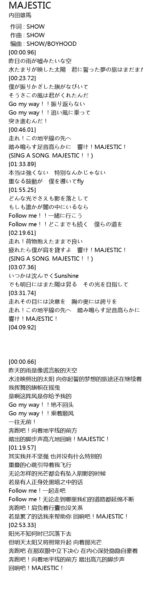 | [02:53.33] | SING A SONG. MAJESTIC!! |