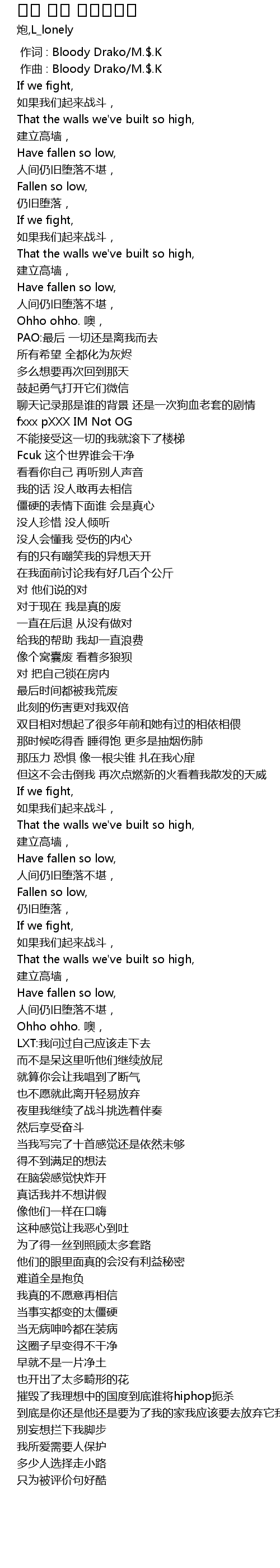 | [00:00.000] | 作词 : Bloody Drako/M.$.K |
