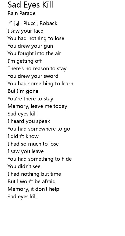 | 歌曲 | Sad Eyes Kill |