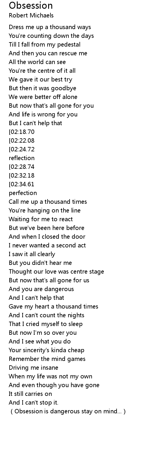 | [02:41.76][02:22.08][01:43.09][01:22.69][00:43.12] | It' s a question of obsession |