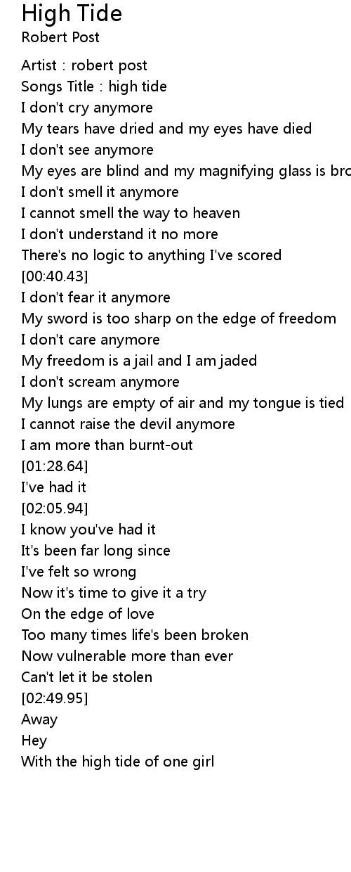 | [00:03.96] | Songs Title:high tide |