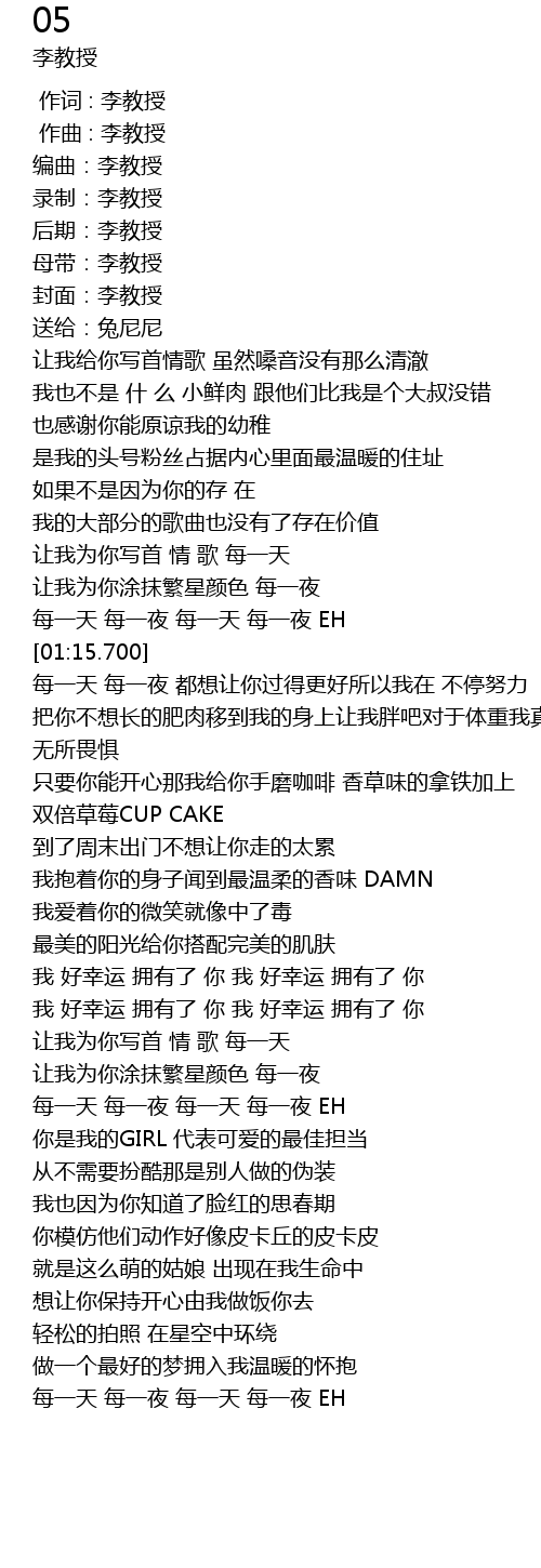| [00:40.696] | 让我为你写首 情 歌 每一天 |