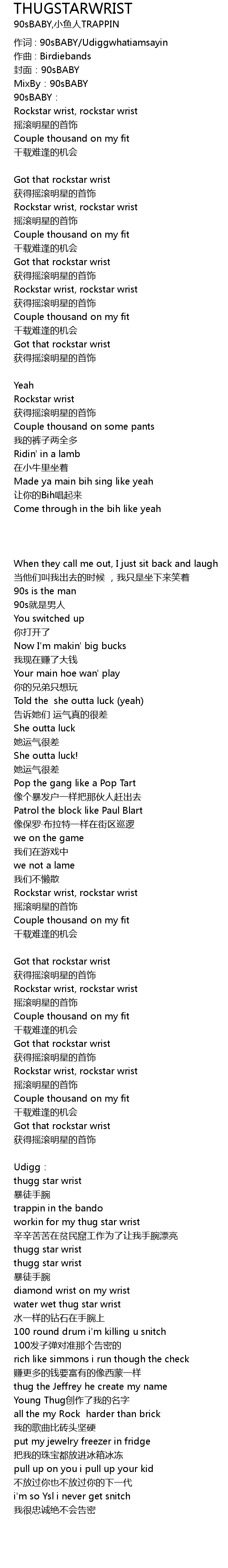 | 歌曲 | THUGSTARWRIST |
