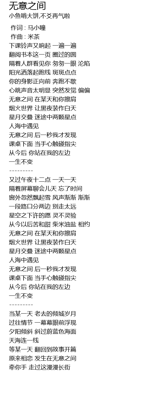 | [02:26.675] | 无意之间 在某天和你擦肩 |