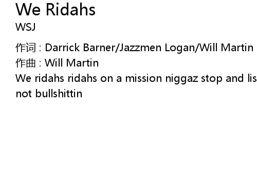 | We ridahs ridahs on a mission niggaz stop and listen what im kickin you know im not bullshittin |