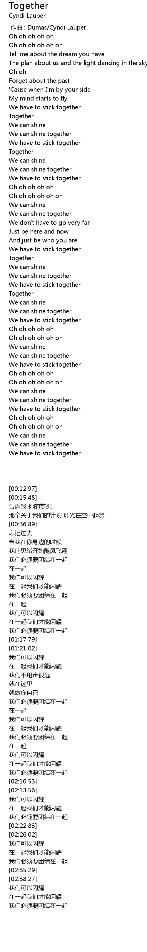 | [00:00.000] | zuo qu : Dumas Cyndi Lauper |