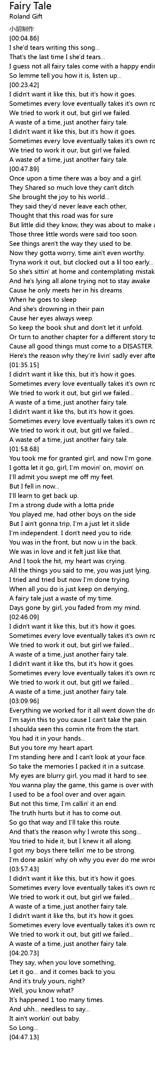 | [02:55.34] | A waste of a time, just another fairy tale. |