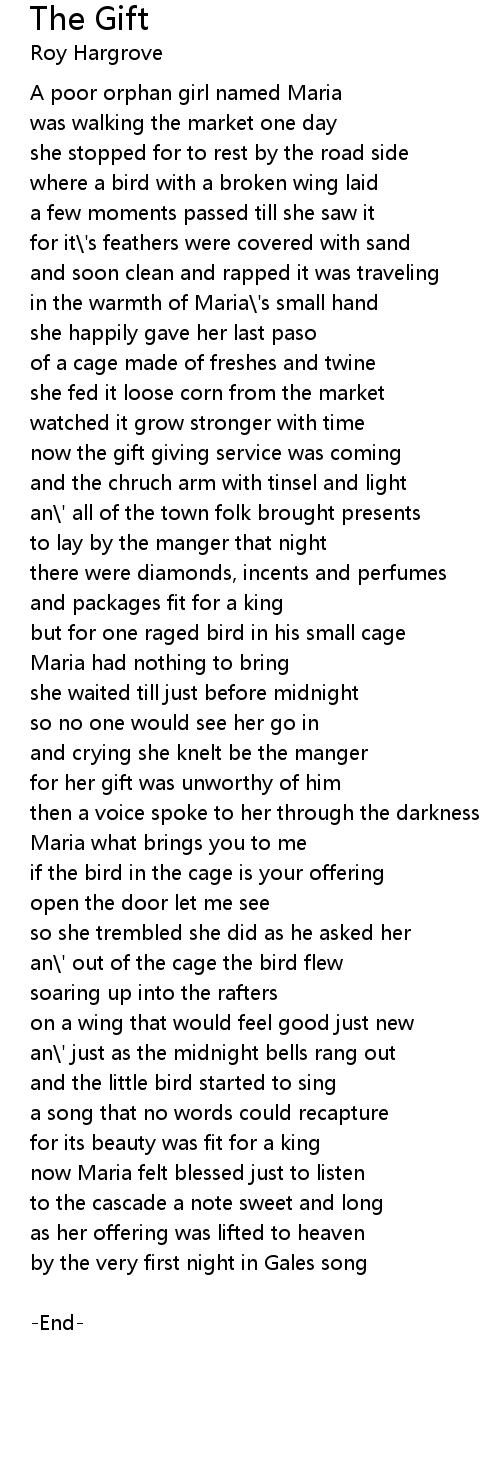 an\' all of the town folk brought presents |