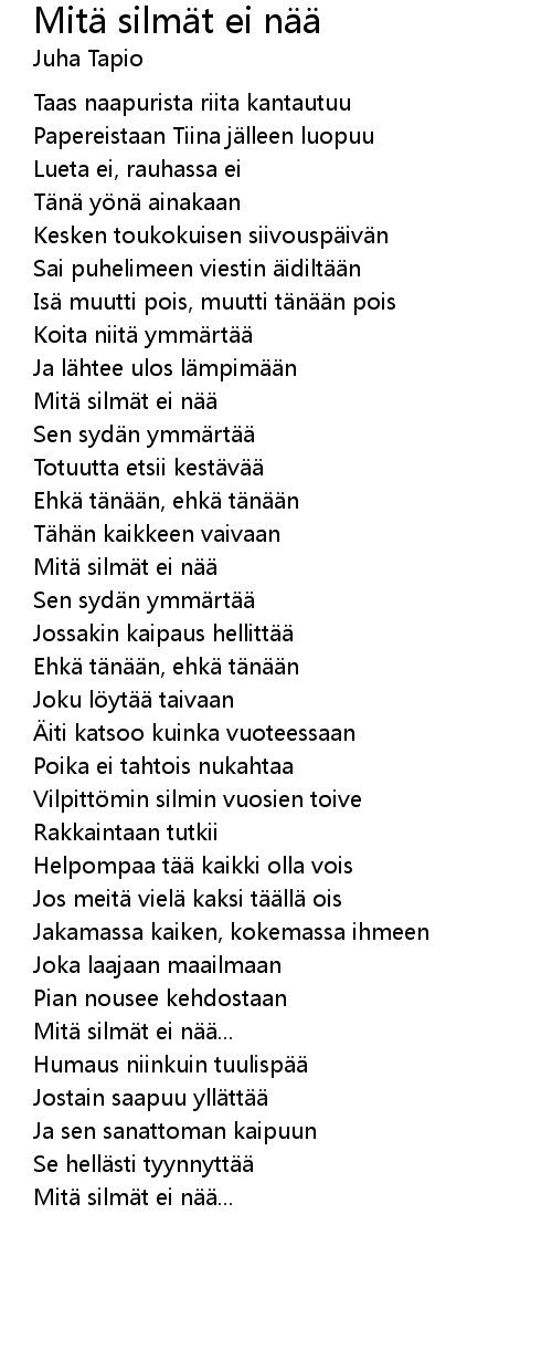 | 歌曲 | Mitä silmät ei nää |