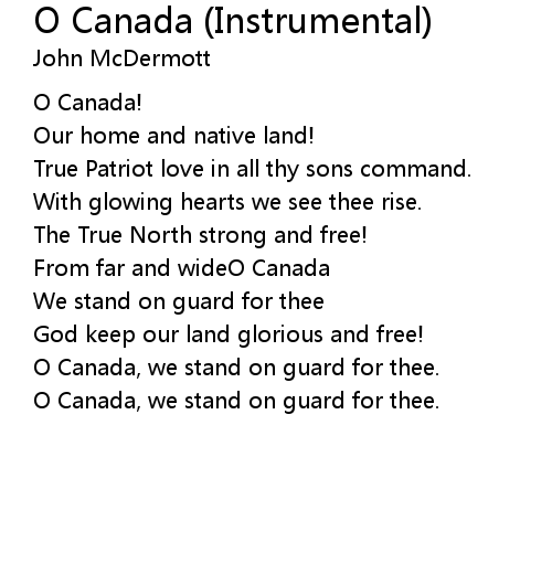 | [00:43.17] | O Canada, we stand on guard for thee. |
