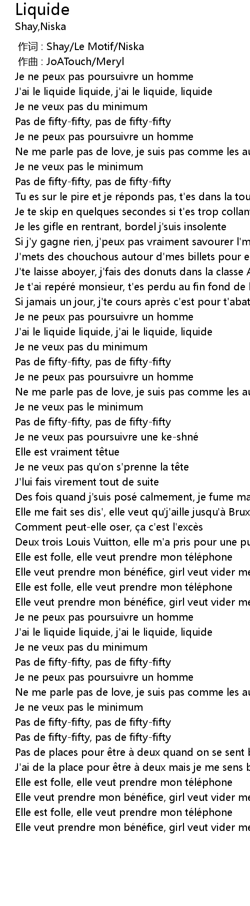 | [01:52.75] | J'ai le liquide liquide, j'ai le liquide, liquide |