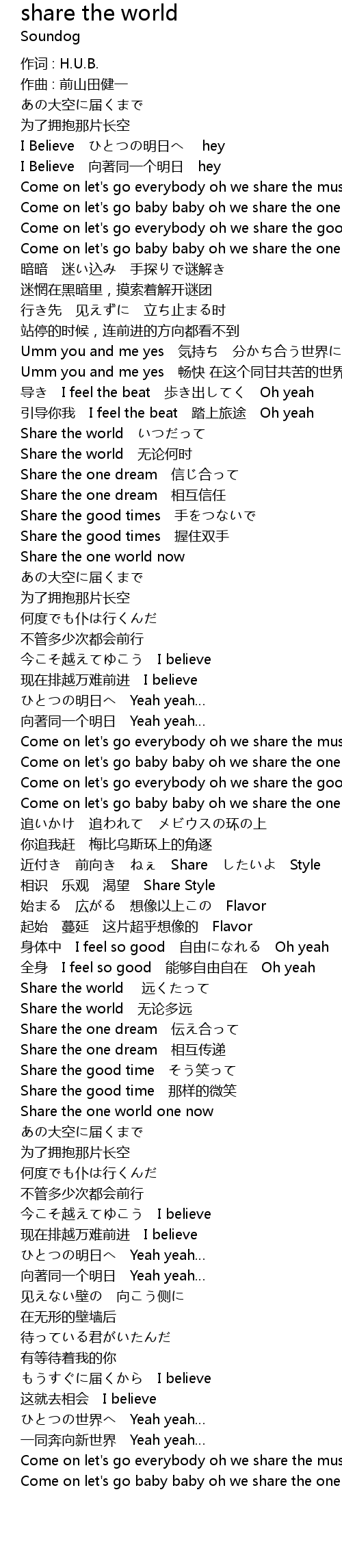 | Umm you and me yes 気持ち 分かち合う世界に | |