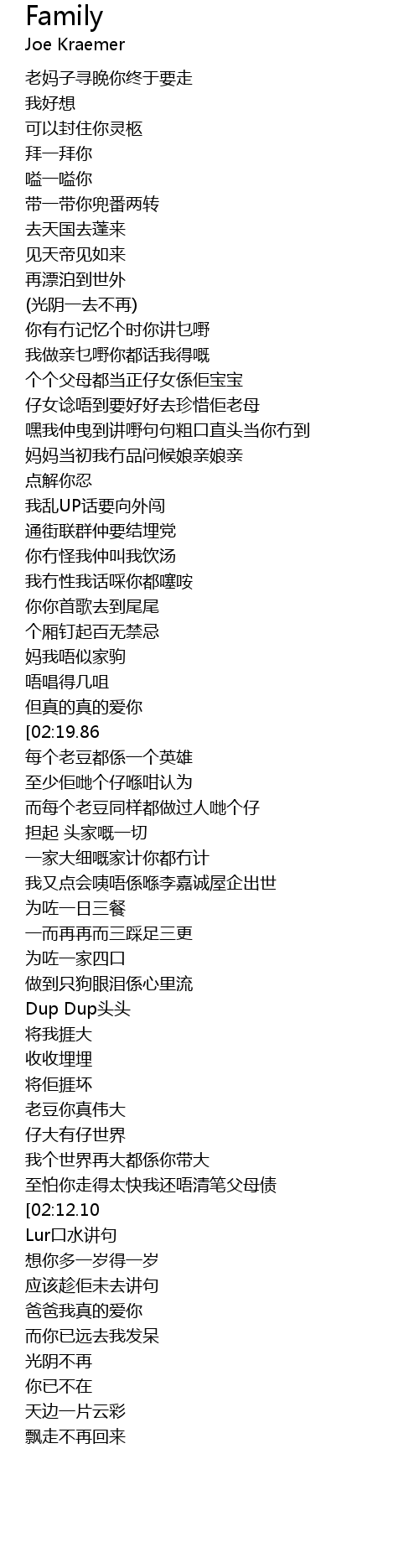 | [02:07.36] | 至怕你走得太快我还唔清笔父母债 |