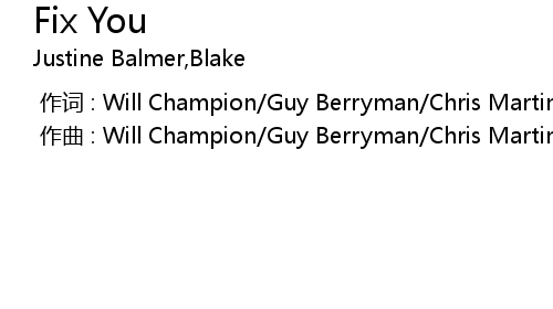 | [00:00.000] | zuo ci : Will Champion Guy Berryman Chris Martin Jonny Buckland |