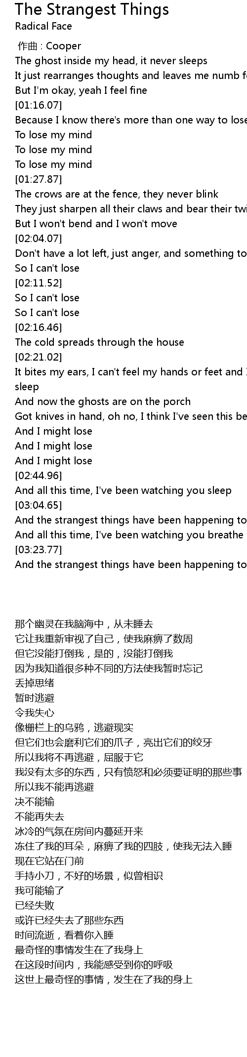 | 歌曲 | The Strangest Things |