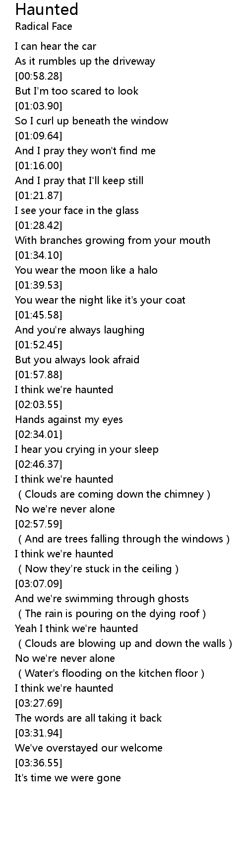 | [03:13.91] | Yeah I think we' re haunted |