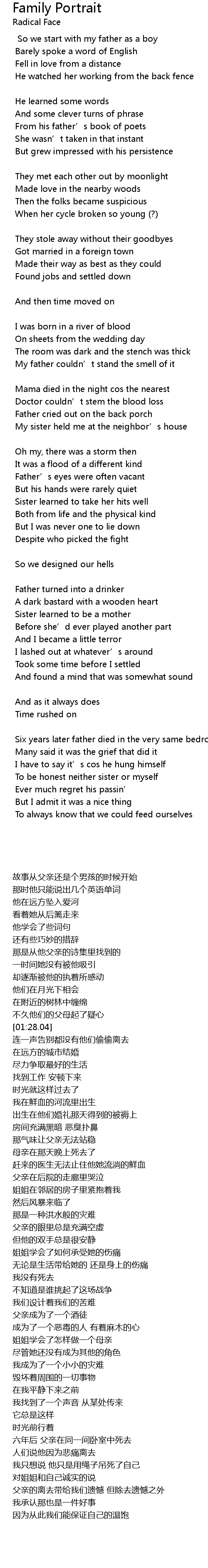 | [04:24.69] | 父亲的离去带给我们遗憾 但除去遗憾之外 |
