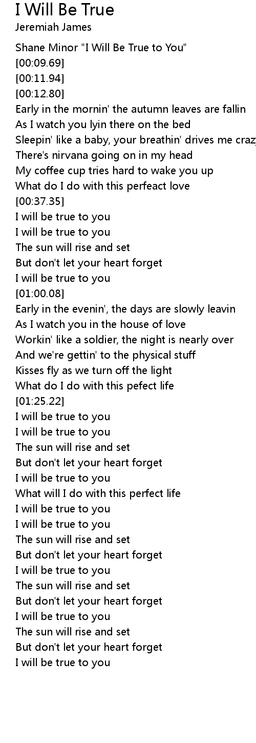 Shane Minor "I Will Be True to You" |