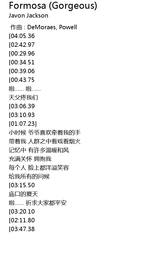 | [00:00.00] | 作曲 : DeMoraes, Powell |