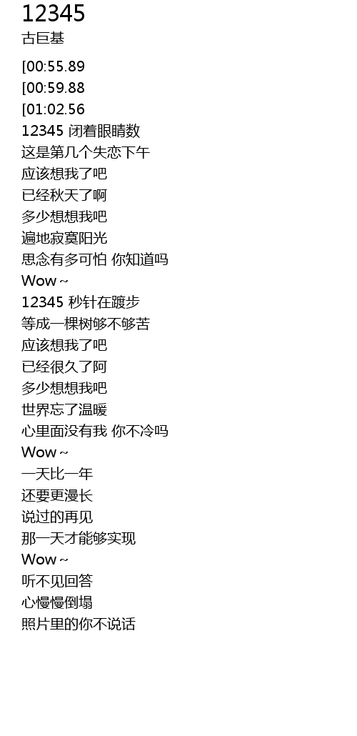 | [01:08.40] | 12345 秒针在踱步 |