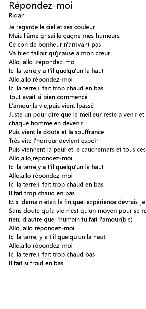 | 歌曲 | Répondez-moi |