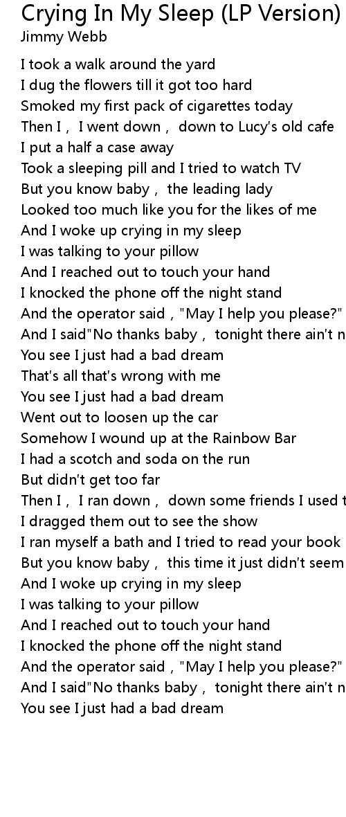 | 歌曲 | Crying In My Sleep (LP Version) |