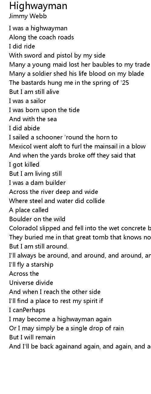 I was a highwayman |