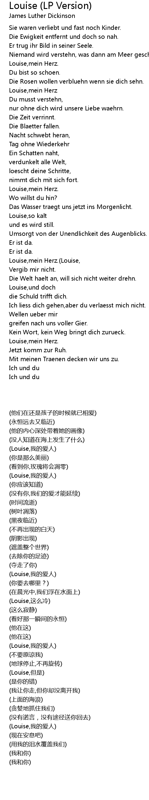 Die Welt haelt an, will sich nicht weiter drehn. |
