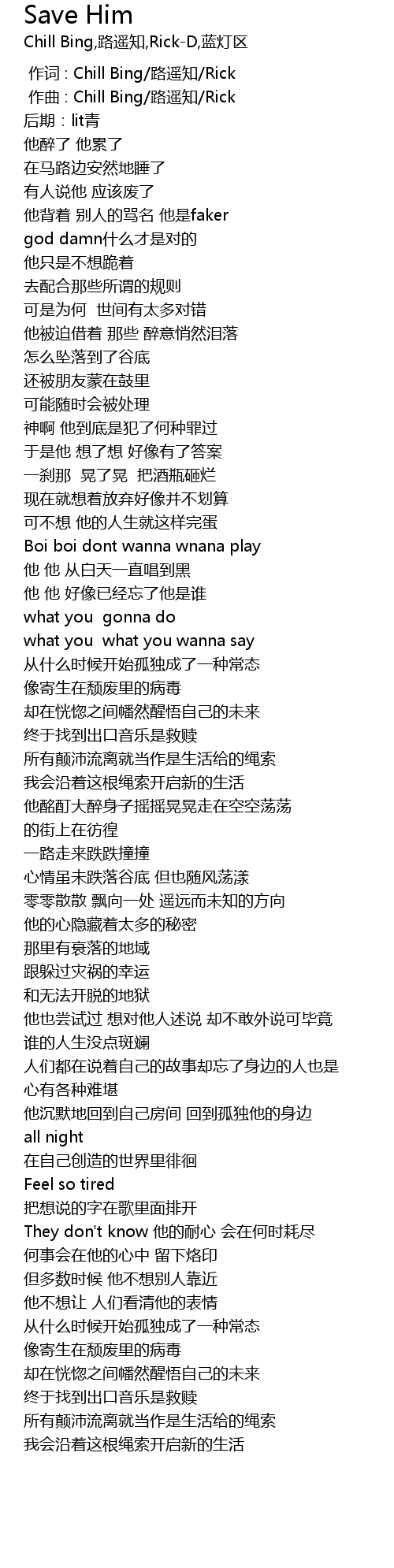 | [00:00.000] | 作词 : Chill Bing/路遥知/Rick |
