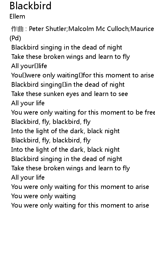 | [00:56.357] | Blackbird, fly, blackbird, fly |