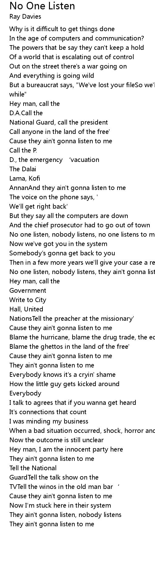 | They ain' t gonna listen, nobody listens | |