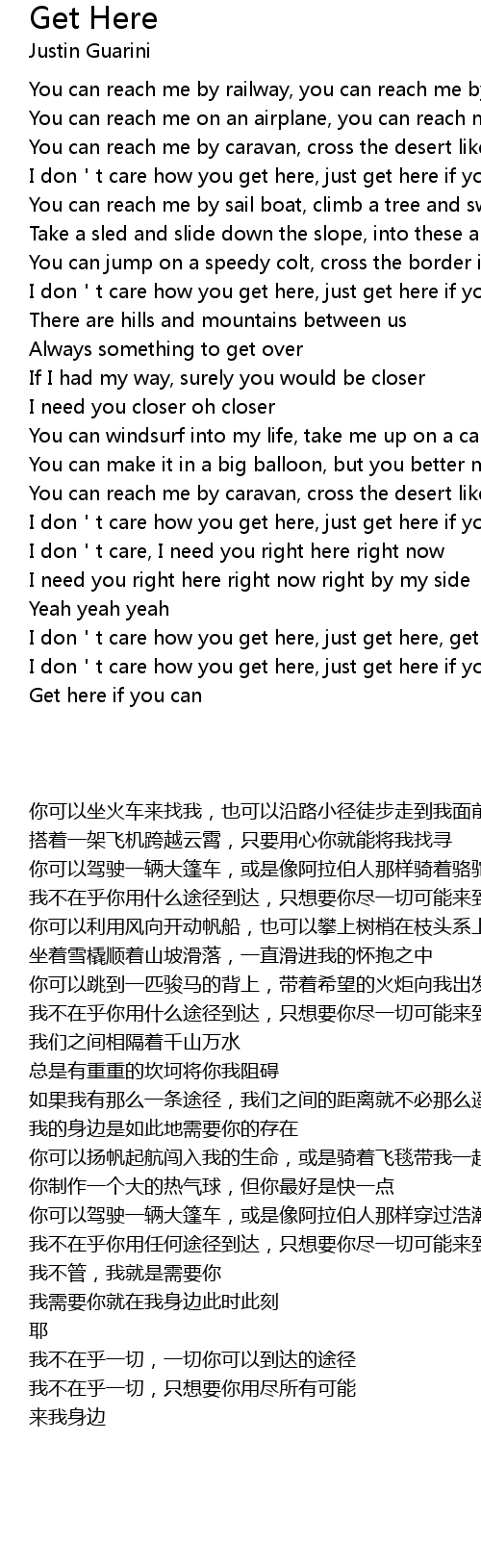 | [01:29.83] | I don t care how you get here, just get here if you can |